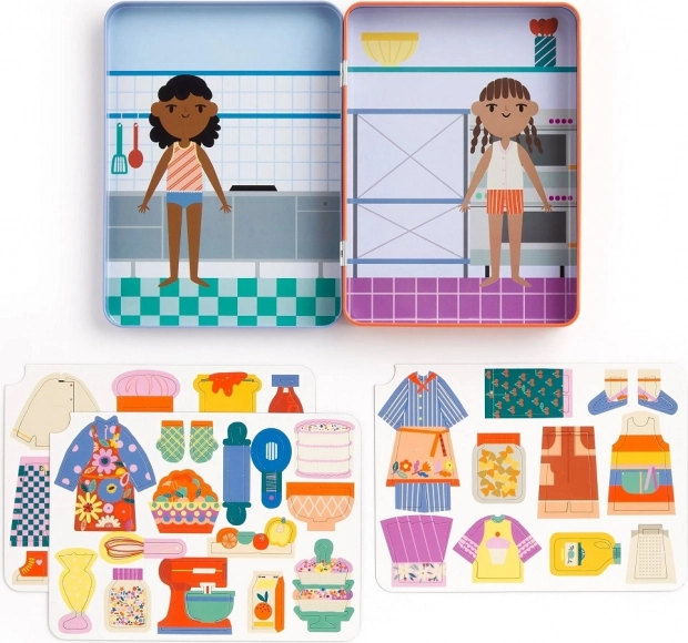 Magnetická sada Můžu být kuchař od MUDPUPPY přináší dětem hodiny nápadité zábavy. V kovové, snadno omyvatelné krabičce najdete dvě barevné kuchyňské scény a více než 40 magnetických dílků oblečků a kuchyňských doplňků. Děti mohou kombinovat postavy, vytvářet vlastní příběhy o vaření a pečení a rozvíjet tak svou představivost.