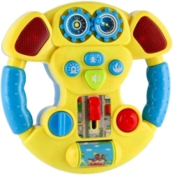 Volant svítí, má řadu tlačítek i otočných prvků a vydává zvuky motoru, hasičské či policejní sirény či houkačky záchranky. Právě malým dětem je přizpůsobena i velikost volantu, jenž má průměr cca 16 cm.