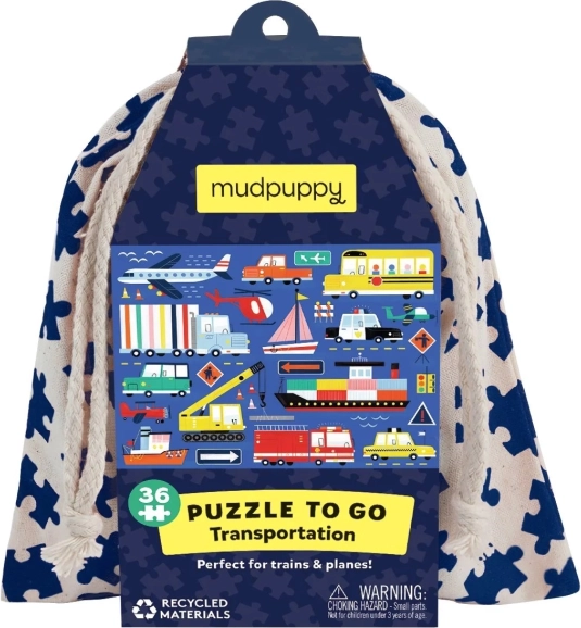 Cestovní puzzle s motivem dopravních prostředků potěší malé stavitele od 3 let. Obsahuje 36 precizně vyřezaných dílků, je zabaleno v mušelínovém pytlíku se stahovací šňůrkou a vyrobeno z recyklovaných materiálů s nezávadnými barvami a matnou povrchovou úpravou pro skvělý vzhled i odolnost.