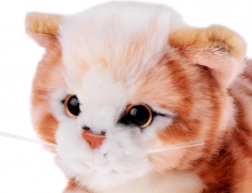 Zrzavé pruhované koťátko s výraznýma očima a jemnými vousky působí jako živé – zaujme na první pohled.