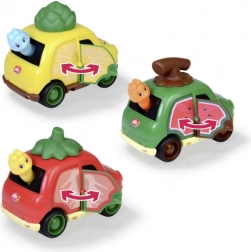 Roztomilé ovocné autíčko pro nejmenší o délce 12 cm přináší zábavu, hudbu a rozvoj dovedností. Každý z 3 barevných motivů (jahoda, meloun, ananas) má otevírací dvířka, integrovanou hrací skříňku a pohyblivou housenku pro interaktivní hraní. Bezpečné provedení bez malých dílků je ideální pro děti od 12 měsíců. Produkt je zasílán náhodně, cena platí za 1 kus.