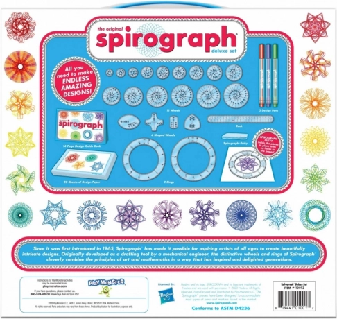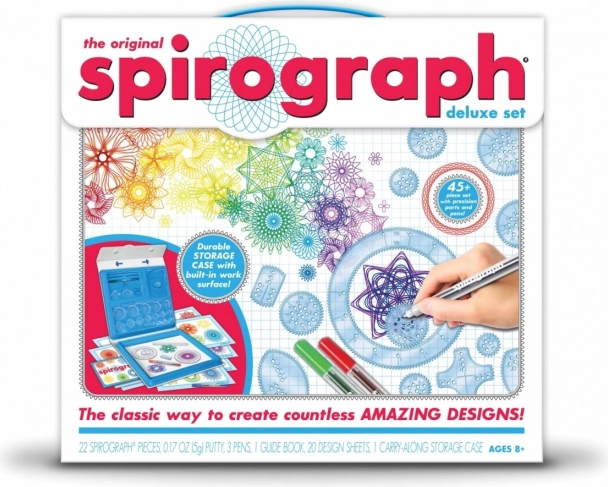 Od roku 1965 inspiruje Spirograf malé i velké umělce k tvorbě fascinujících obrazců, které propojují umění a matematiku. Původně inženýrský nástroj dnes nabízí nekonečné možnosti tvorby – stačí zvolit správné kolečko, vložit pero a nechat vzory plynout.