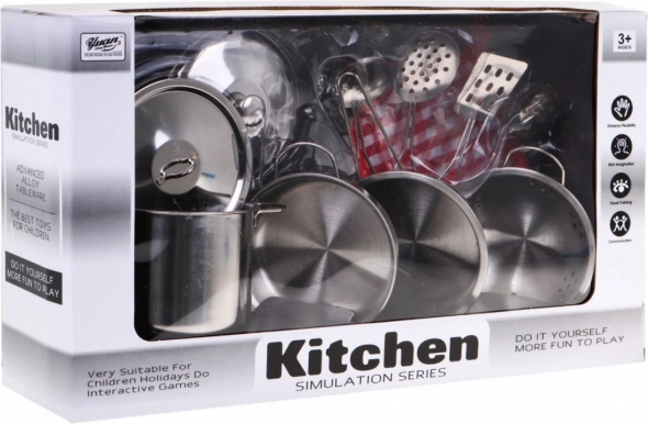 Tato kvalitní sada z nerezové oceli přináší dětem autentický kuchařský zážitek v bezpečné, miniaturní velikosti. Děti mohou „vařit“ jako dospělí, servírovat a zkoušet nové recepty při hře na domácnost. Realistické tvary a lesklé provedení podněcují fantazii a rozvíjejí jemnou motoriku.