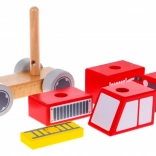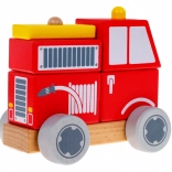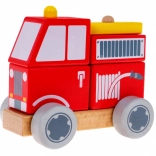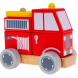 Postavte si vlastní hasičský vůz ze sady dřevěných kostek. Dítě nasazuje dílky na dva kolíčky na podstavci a vytváří tak jednoduchou skládačku, která podporuje koordinaci ruka–oko, trpělivost a logické uvažování. Hladce opracované dřevo a odolné barvy jsou přátelské k dětským rukám i životnímu prostředí.