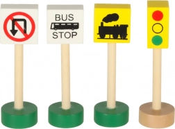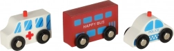 Tato dřevěná souprava umožňuje dětem tvořit vlastní město s různými vozidly a budovami.