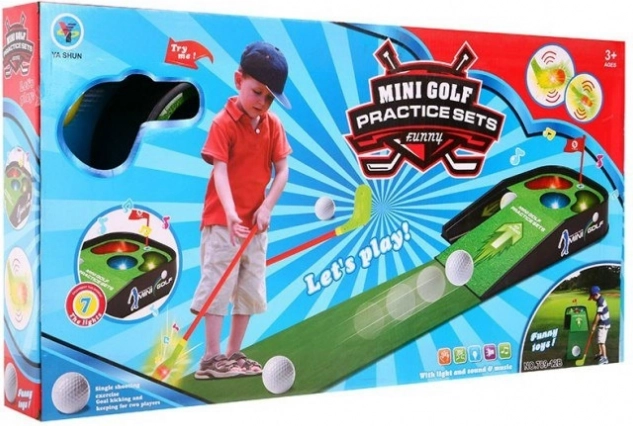 Tato mini golf sada obsahuje vše potřebné k tomu, abyste mohli hrát golf kdykoliv a kdekoliv. Díky světelným a zvukovým efektům poskytuje jedinečný zážitek, který zaujme malé i velké hráče.