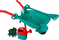 | | Představujeme vám úžasný zahradní set pro malé zahradníky. Sada se bude líbit chlapcům i dívkám. Ideální pro společné trávení času na čerstvém vzduchu. Zima je za dveřmi, listí ze stromů opadává. S touto sadou vám vaše dítě bude moci pomáhat se všemi pracemi na zahradě. Můžete společně hrabat listí, přesazovat a zalévat rostliny. Dítě si osvojí správné návyky péče o přírodu a zároveň si užije neuvěřitelnou zábavu. Učení a zábava zaručeny. Estetické zpracování, pestré barvy sady, robustnost, rozmanitost. Sada obsahuje: Tácky mají otvory, do kterých můžete vložit vidle a lopatu a na boku na háčky můžete naaranžovat velké hrábě a lopatu. Sada obsahuje helmu, protože bezpečnost práce je vždy nejdůležitější, a rukavice, aby se malý zahradník nepořezal a neušpinil. Rozměry balení: - délka cca 60 cm, - šířka cca 35 cm, - hloubka cca 15 cm. Návod na sestavení trakaře je součástí balení, snadná montáž a demontáž. Hračka je určena pro děti od 3 let a má certifikát CE. Celá je zabalena v barevném obalu, ideální na dárky. | Obsah sady | - velký trakař (cca 76 cm x 42 cm, rozměry samotného trakaře cca 45 cm x 30 cm),