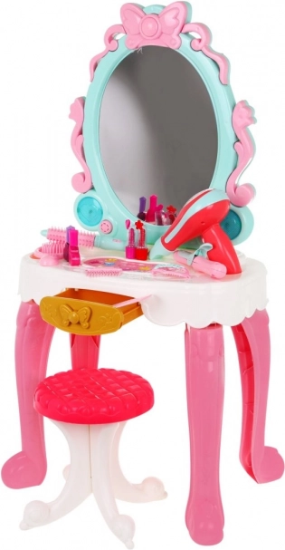 Stabilní toaletka se zrcadlem, pohodlná stolička a výsuvná zásuvka zajistí komfort i pořádek při hraní.