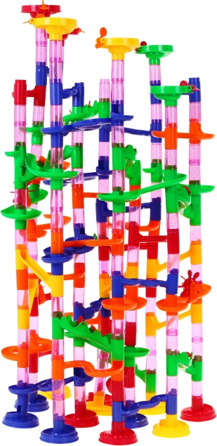 | Kulíčková dráha je vynikající hra pro malé i velké. Pouštění kuliček do pohybu a sledování jejich překonávání spletitých tunelů a pádů uklidňuje, zklidňuje a přináší spoustu zábavy. Děti mohou vytvářet úžasné stavby podle návodu nebo stavět podle vlastních představ. Hračka pozitivně ovlivňuje rozvoj kreativity, představivosti, manuální a konstrukční zručnosti. Principy hry: - vytvořit řetěz stavebních prvků (na výběr 4 varianty) - návod, - uvést kuličku do pohybu, - čí kulička dosáhne cíle jako první, ten vyhrává. Hračka je vhodná pro děti od 3 let. Počet hráčů 2-4. Výborné zpracování, syté barvy, rozmanitost tvarů. Vše zabaleno v barevném balení, ideální jako dárek. | ||