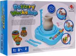 Součástí balení je vše potřebné: 800 g hlíny, sochařská nářadí, stojan a řezací struna s úchyty pro snadné sejmutí výrobku z kruhu. Sada je ideální pro rozvoj zručnosti, koordinace oko–ruka a uměleckého vyjádření.