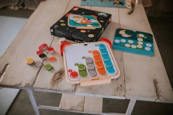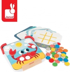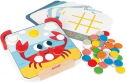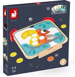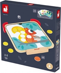Magnetická vzdělávací hra Učím se barvy od značky JANOD nabízí komplexní aktivitu pro malé objevitele. Součástí je dřevěná magnetická tabulka s podstavci, 42 barevných magnetických koleček, 10 oboustranných předloh se zadáními a křída. Děti umisťují magnety na správná místa podle předloh, trénují barvy, vzory a soustředění – a tabuli mohou využít i ke kreslení a prvním pokusům o písmena či čísla.