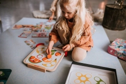 Děti skládají barevná kolečka podle předloh, trénují rozpoznávání barev, vzorů a soustředění – zábavně a bez nátlaku.