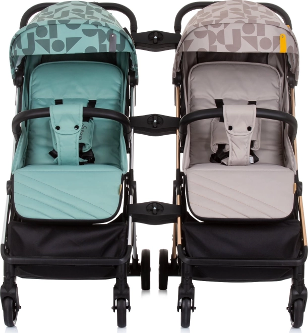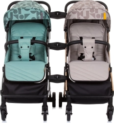 Odpružená rychloupínací kola a zadní článková brzda zajišťují hladkou a bezpečnou jízdu. 5bodové bezpečnostní pásy s polstrováním, nastavitelná opěrka zad i nohou a odnímatelné madlo s potahem z ručně prošívané ekokůže se postarají o komfort dítěte i rodiče. Nechybí síťování pro lepší proudění vzduchu a prostorný koš na nákupy.