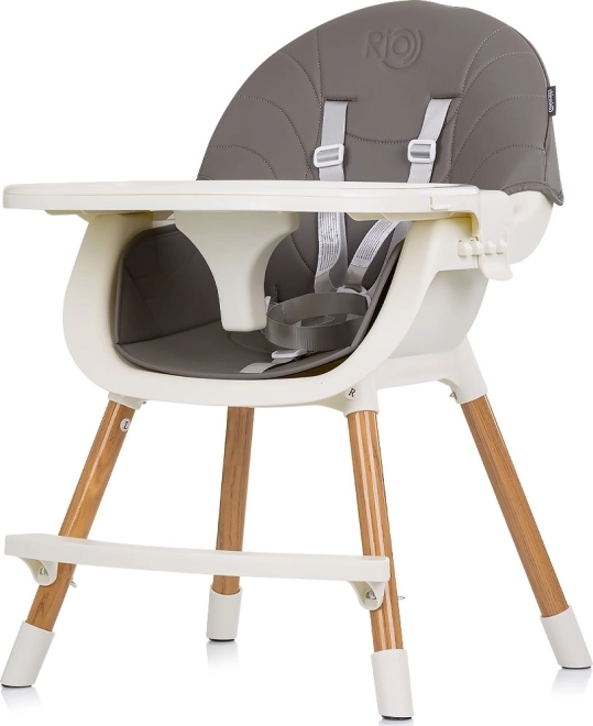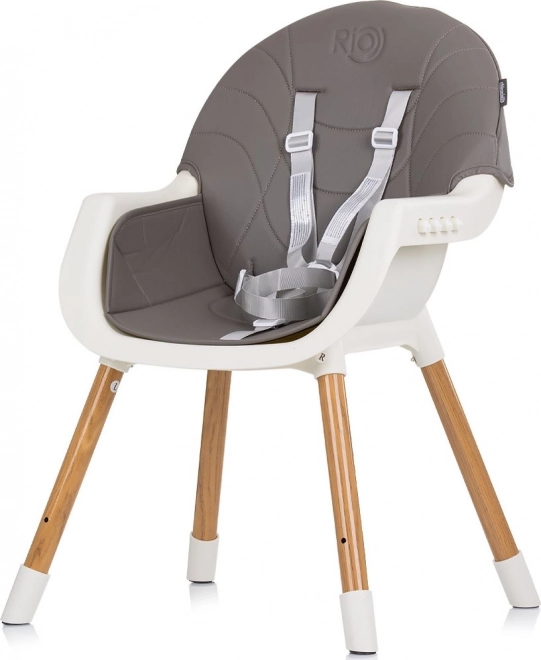 Jídelní židlička 2v1 Rio roste s vaším dítětem – snadno ji přestavíte z vysoké židle k jídelnímu stolu na nízkou samostatnou židličku. Pohodlné sedátko s koženým potahem se jednoduše čistí, takže zvládne i ty nejdivočejší příkrmy.