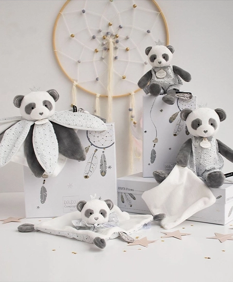Vysoce kvalitní plyšový muchláček panda je navržen tak, aby rozvíjel smysly a zvědavost vašeho malého pokladu. Díky jemným harmoniím moderních barev a prvotřídních materiálů se stane oblíbeným kamarádem nejen pro ty nejmenší, ale i starší děti.