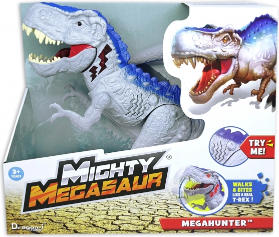 Dinosaurus Mighty Megasaur Megahunter okouzlí každé dítě svým realistickým vzhledem, působivými čelistmi a dynamickými pohyby. Tato hračka je vybavena světelnými a zvukovými efekty, které umocňují atmosféru pravěké doby během hry. Díky pohyblivým funkcím se hračka může otáčet hlavou a ocasem, díky čemuž děti získají dojem, že mají co do činění se živým dinosaurem.