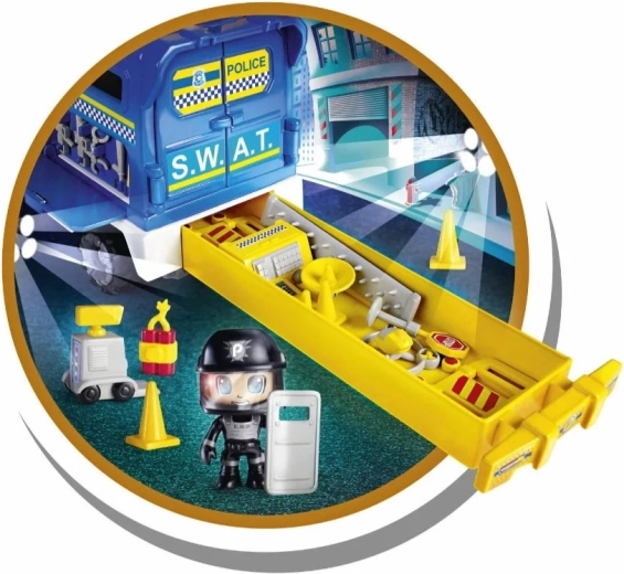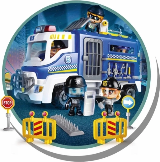 Objevte akční svět sady PINYPON Action – policejní furgon se 2 postavičkami a doplněkmi. Ideální pro kreativní hraní, rozvoj fantazie a zábavné policejní mise ve městě.