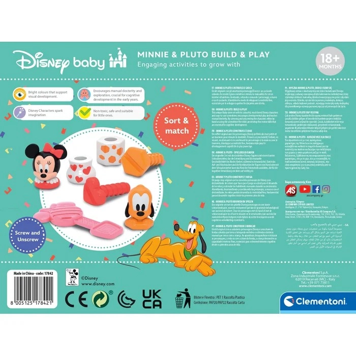 Objevte zábavný a vzdělávací set pro nejmenší s postavičkou MINNIE od Disney! Děti si mohou postavičky šroubovat a rozšroubovávat ručně nebo barevným šroubovákem, čímž rozvíjejí jemnou motoriku, koordinaci ruka–oko a vizuální vnímání barev a tvarů. Kvalitní zpracování navržené a vyrobené v Itálii.