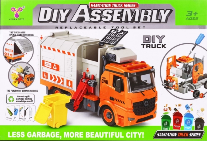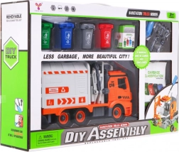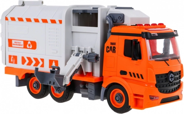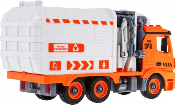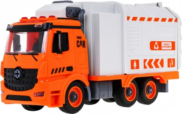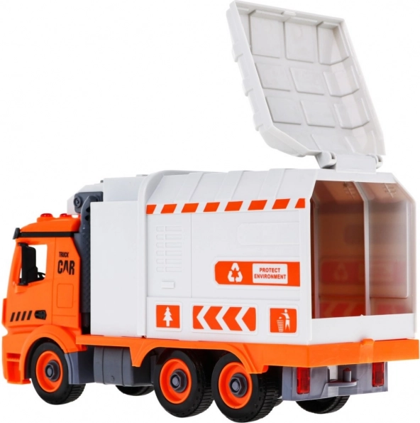 Se šroubovákem s výměnnými bity dítě auto rozebere a složí. Boční rameno zvedá a vysypává kontejnery jako u skutečné popelářské soupravy.