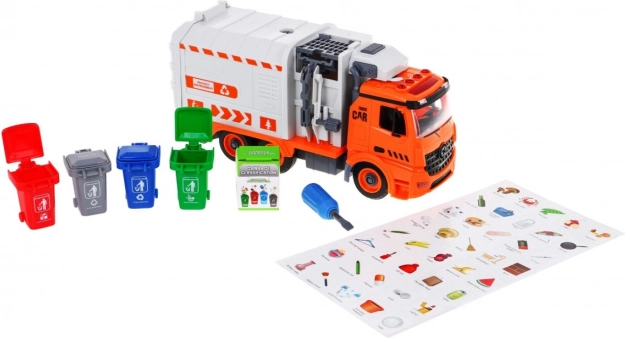 Interaktivní popelářské auto pro děti 3+ s 4 kontejnery a kartičkami na třídění odpadu