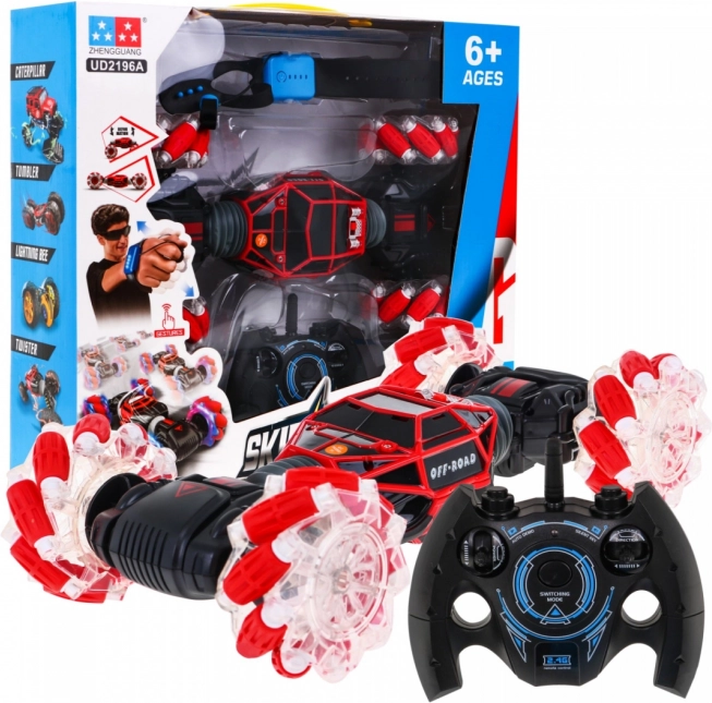 Toto odolné kaskadérské auto přináší dynamickou jízdu na různých površích. Díky ovládání gesty pomocí pohodlné opasky na ruku i přes přesný 2,4GHz dálkový ovladač zvládne jízdu vpřed/vzad, do stran a změnu polohy podvozku z ploché do zvednuté pro průjezd nerovnostmi. Velká podsvícená kola vytvářejí působivý světelný efekt, který děti milují, a hudební doprovod je možné zapnout i vypnout.