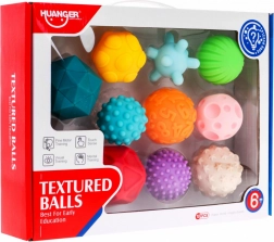 Každý míček má jiný povrch – výstupky, drážky či nopky – pro intenzivní hmatové vjemy a lepší úchop.