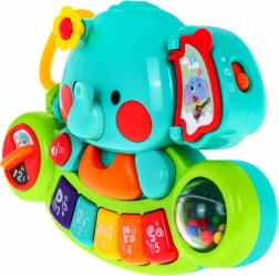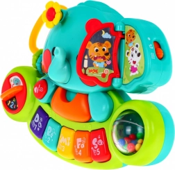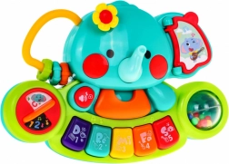 Interaktivní slon s mini pianem pro děti 6m+ – hudební hračka a chrastítko