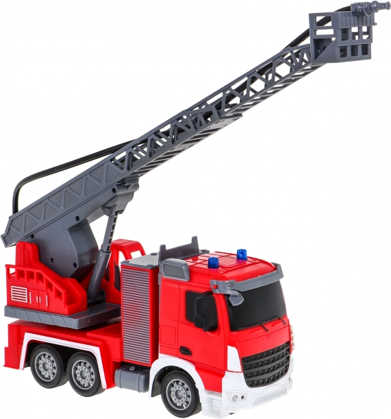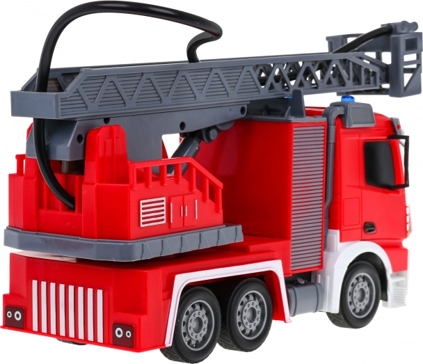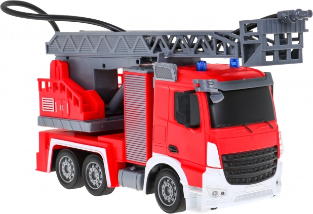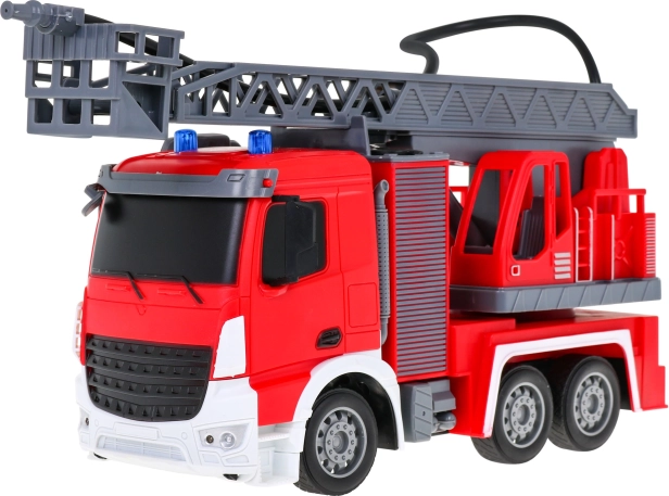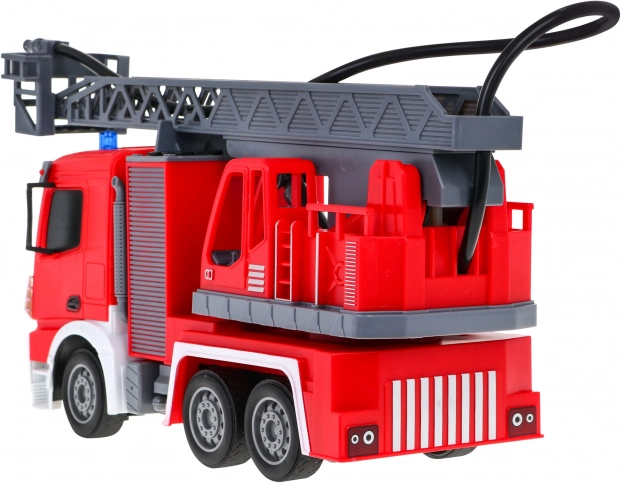 Pravým tahákem je vodní hadice, ze které skutečně teče voda – perfektní pro bezpečné a kreativní scénáře hašení. Žebřík lze vysouvat, zvedat a spouštět a otáčet o 180°, takže se dostanete i k „nejvyšším“ oknům. Ovládání na frekvenci 2,4 GHz zajišťuje stabilní signál bez rušení.