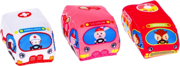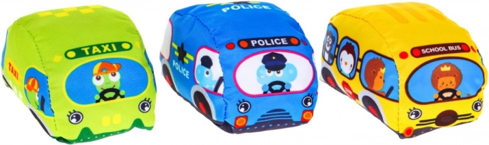 Barevná textilní autíčka s roztomilými řidiči jsou lehká, hebká a ideální pro malé ručky. Podporují zábavnou a bezpečnou hru bez tvrdých hran.