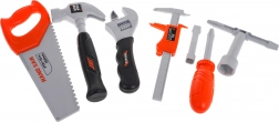 Batoh je vyroben z odolné textilie, má hlavní komoru na zip, boční a přední kapsy a nastavitelné popruhy pro pohodlné nošení. V sadě nechybí pila, kladivo, šroubovák s bity, klíče, šrouby s matkami ani montážní destičky – vše v dětské, lehké a trvanlivé konstrukci.