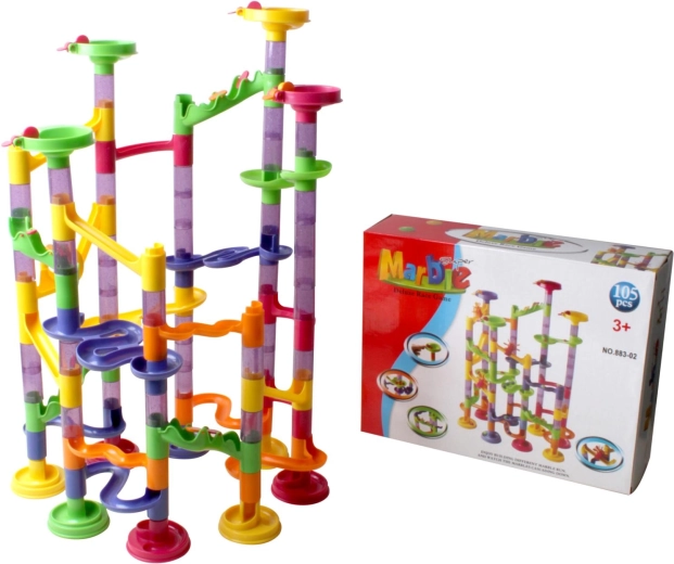 Tato kuličková dráha nabízí barevné a pevné konstrukce vhodné již pro děti od 3 let. Sestavení dráhy je zábavné a umožňuje kreativní vyjádření. Sada obsahuje 105 konstrukčních částí a 30 kuliček, což dává prostor pro mnoho variací a zábavy.