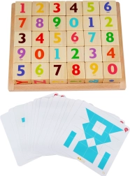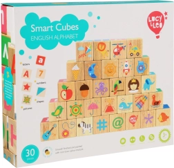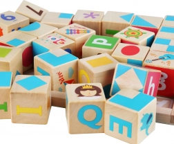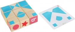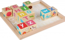 Sada obsahuje také rámečkovou podložku s abecedou a 15 oboustranných karet se speciálními předlohami. Děti mohou přiřazovat kostky na správná místa nebo vytvořit obrazce dle vzoru připomínající tangram. Vyrobeno z kvalitního dřeva a malováno netoxickými barvami, zajišťuje bezpečnou a zábavnou hru.