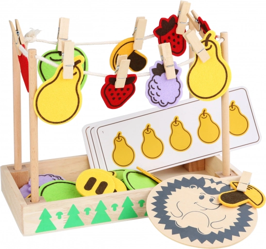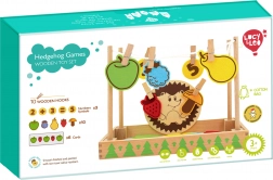 Sada zahrnuje dřevěnou základnu, ježečka, zábavné karty a barevné filcové podložky - ideální i pro společné hraní více dětí. Pro snadné ukládání je vše zabaleno v praktickém bavlněném pytlíčku.