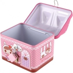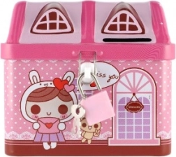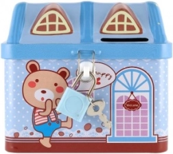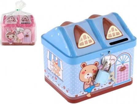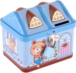 Tato plechová pokladnička ve tvaru domečku je ideální pro první krůčky ke správnému hospodaření s penězi. Díky uzamykání na klíček zůstanou naspořené korunky v bezpečí a vhoz na horní straně usnadní pravidelné spoření. Barevné ilustrace a hravý design motivují děti k ukládání drobných mincí každý den.