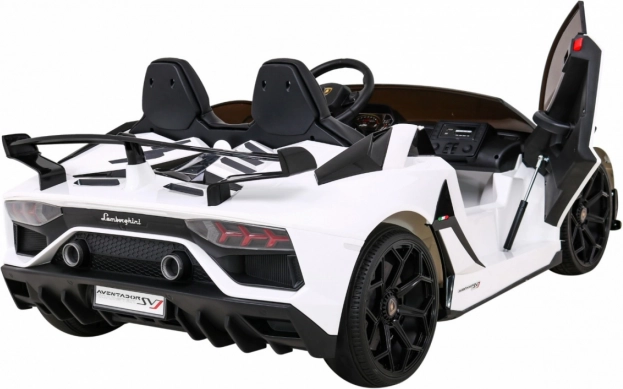 Zažijte skutečnou zábavu s licencovaným dětským autíčkem Lamborghini SVJ pro dva malé jezdce. Výkonné motory, funkce driftu, kvalitní EVA kola vpředu a dálkové ovládání 2,4 GHz s bezpečnostním tlačítkem STOP zaručí bezpečnou a vzrušující jízdu. Nechybí LED světla, audio panel s MP3/USB, měkké sedadlo z ekokůže a otevírací dveře s blokací.