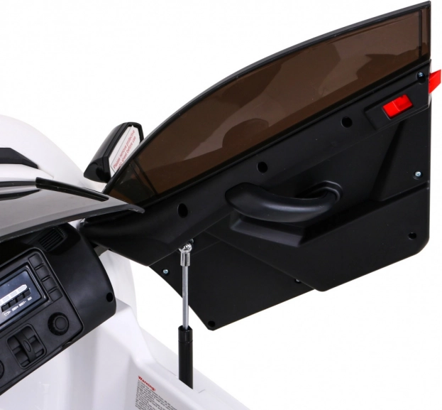 Bezpečnost a komfort zajišťuje dálkový ovladač 2,4 GHz se třemi rychlostmi a funkcí nouzového zastavení, měkké sedadlo z ekokůže se bezpečnostními pásy a otevírací dveře s blokádou. Reálný zážitek podtrhují LED přední i zadní světla, zvuk startování motoru a multimediální panel s MP3/USB.
