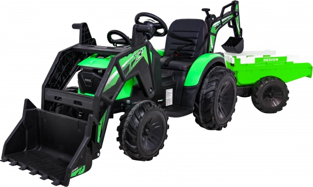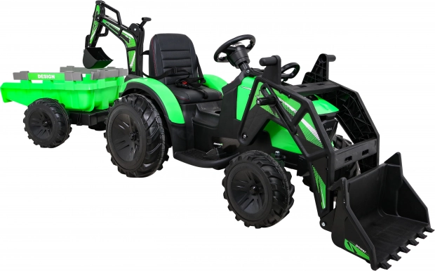 Robustní dětský elektrický traktor s přívěsem v zelené barvě nabízí 2× 45 W motory, baterií 12 V / 10 Ah a dálkové ovládání 2,4 GHz pro bezpečnou jízdu. Velká EVA kola, pohodlné sedadlo z ekokůže, LED světla a audio panel s MP3/USB/AUX dělají z tohoto traktoru perfektní volbu pro venkovní zábavu. Přívěs s možností zvednutí korby rozšíří hry o převážení nákladu.