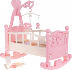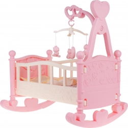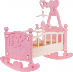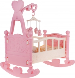 Tato dětská kolébka pro panenky je ideální pro malé pečovatele. Vyniká stabilní konstrukcí z kvalitního plastu, příjemnou barevností a detaily s motivy srdíček. Díky houpacímu mechanismu lze panenku jemně ukolébat ke spánku, zatímco ručně otáčený kolotoč podpoří hravou atmosféru.