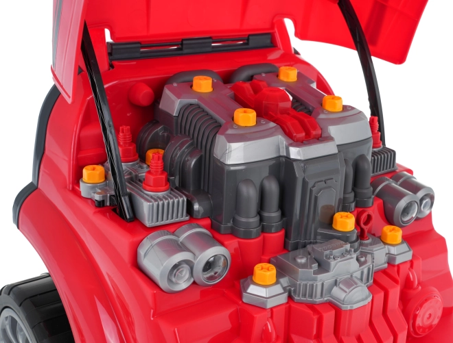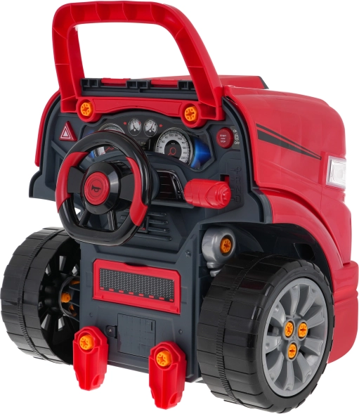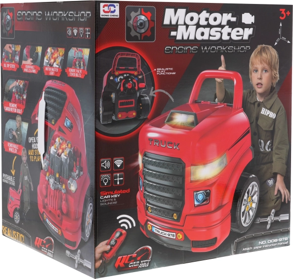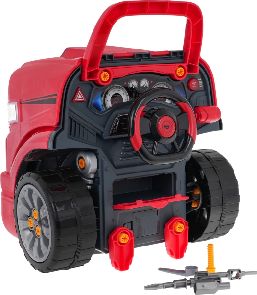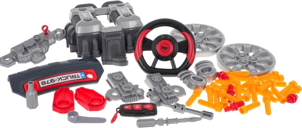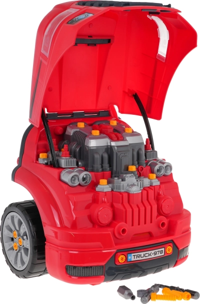 Tento bohatě vybavený set promění každé dítě v malého automechanika. Pod otevíratelnou kapotou nákladního vozu čeká spousta prvků k montáži a demontáži – od svíček a částí motoru až po kola. Palubní deska nabízí startovací tlačítko s realistickými zvuky startu a jízdy, volant s klaksonem i výstražný přepínač. Děti mohou kontrolovat olej, měnit svíčky, "opravovat" kola a trénovat tak koordinaci i logické myšlení.