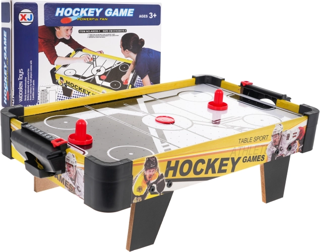 Zábavný stolní air hokej přináší rychlou akční hru pro děti od 3 let i dospělé. Kompaktní rozměry pro stůl, kvalitní MDF konstrukce a výkonný ventilátor pro hladký skluz puku. Součástí jsou 2 pálky, 2 puky a mechanické počítadlo skóre – ideální pro domácí turnaje a trénink postřehu.