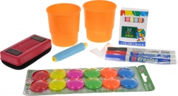 - Kompletní set – taburet, police, fixy, křídy, magnety, kelímky, houbička i klipsy.