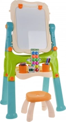 Oboustranná dětská tabule 2v1 pro malé umělce od 3 let nabízí magnetickou bílou tabuli i křídovou černou plochu, plynulé otáčení o 360°, regulaci výšky, praktickou polici na příslušenství a pohodlný taburet. V balení nechybí mazatelné fixy, křídy, magnety ani držák papíru pro nekonečnou kreativní zábavu.