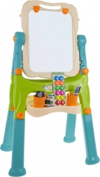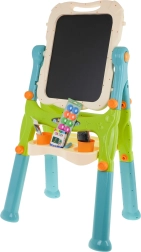 Výměnné kratší a delší nohy přizpůsobí tabuli věku dítěte. Otočný rám o 360° usnadňuje přepínání mezi plochami a pohodlné kreslení.