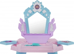 Toaletní stolek v pastelových barvách se stane krásnou dominantou dětského pokoje a podporí rolové hraní, kreativitu i jemnou motoriku. Po stisku tlačítka na spodní části zrcadla se rozsvítí světla a zobrazí se princezny doprovázené melodiemi. Dětský fén vydává zvuk a má lehký proud vzduchu, takže hra na kadeřnici je ještě realističtější.