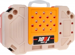 Tato všestranná sada pro malé mistry změří síly s každým domácím „projektem“. Děti si mohou postavit stabilní pracovní stolek a po skončení hry vše snadno uložit do praktického kufříku s rukojetí nebo převézt v tahacím kufříku na kolečkách. Realistická aku vrtačka/šroubovák na 2× AA baterie šroubuje i odšroubovává a při práci svítí červenou diodou – přesně jako opravdový nástroj.