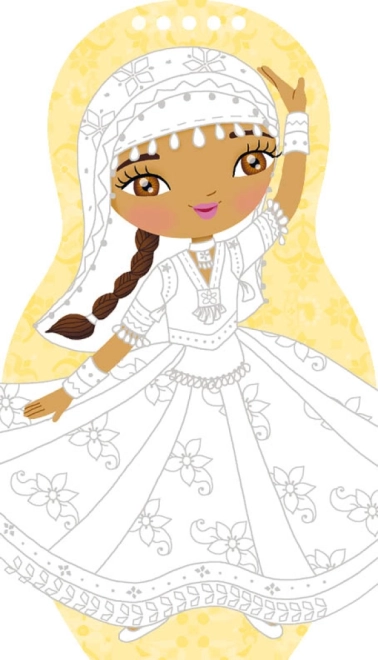 Tato kreativní knížka propojuje omalovánky, samolepky a zábavné poznávání kultur. Malí tvůrci si vybarví tanečnice, dozdobí je módními doplňky a díky samolepkám snadno vytvoří pestré kostýmy inspirované celým světem – od květinových věnečků po třpytivé sukně a hudební motivy.