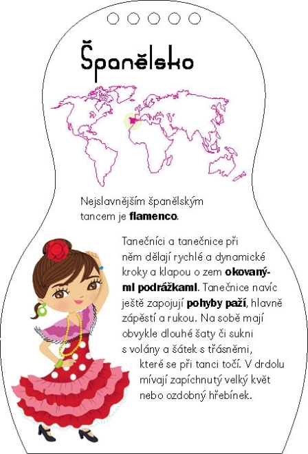 Každá stránka přináší fakta o tanci, hudbě a tradičních oděvech, takže zábava se mění v učení. Kniha podporuje jemnou motoriku, kreativitu i vizuální představivost. Jako bonus děti uvnitř najdou náramek pro štěstí, který potěší a doplní zážitek.