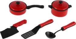 Připravte svou kuchyňku s touto rozkošnou sadou kuchyňského náčiní určenou pro děti od 3 let. Sada obsahuje sedm detailně propracovaných kousků ve výrazných červených a černých odstínech, které zaujmou každého malého kuchaře.