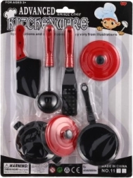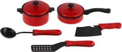 Dětská sada kuchyňského náčiní v černo-červeném provedení je ideální pro malé kuchaře. Tento soubor nabízí imitace opravdového kuchyňského nářadí, který potěší každé dítě a povzbudí jeho kreativitu.