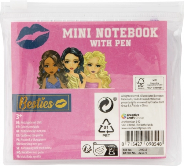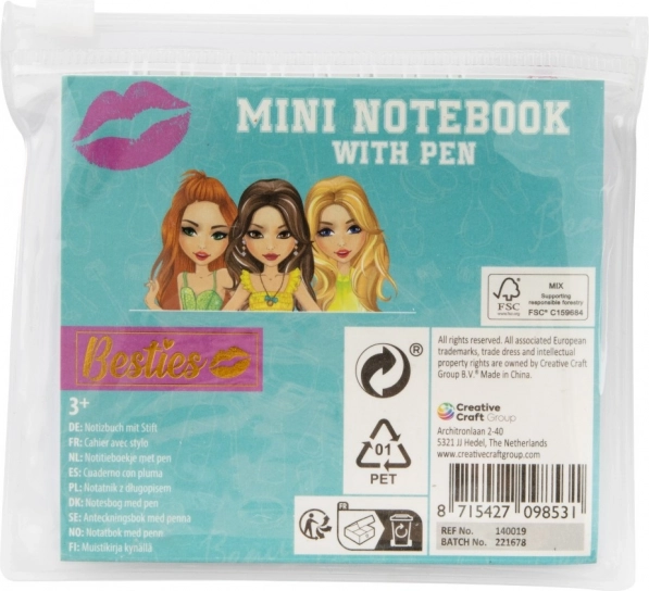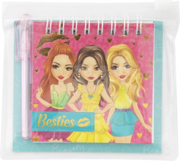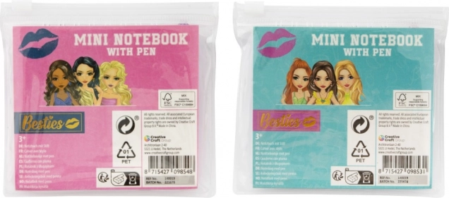 Užijte si zábavu a kreativitu s mini poznámkovým blokem Besties, který obsahuje spirálový blok a stylovou tužku v praktickém průhledném pouzdru. Ideální dárek pro děti a mladé dospělé.